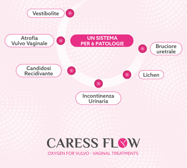 CARESS FLOW è il nuovo approccio SEMPLICE e NATURALE per il trattamento di 6 diverse patologie molto diffuse nella popolazione femminile… con RISULTATI garantiti fin dal 1° trattamento!